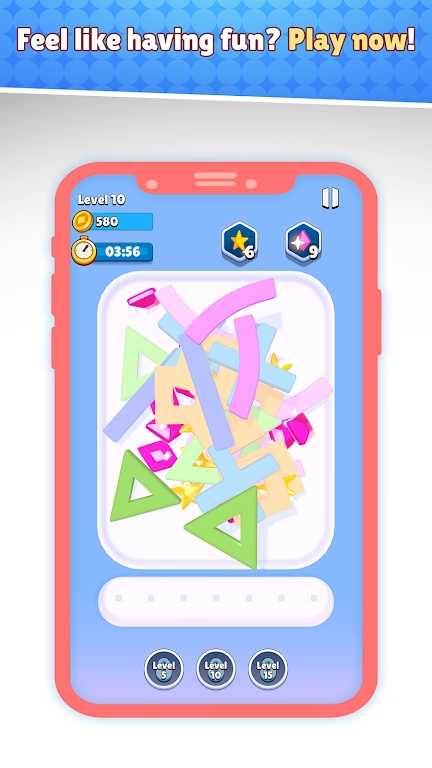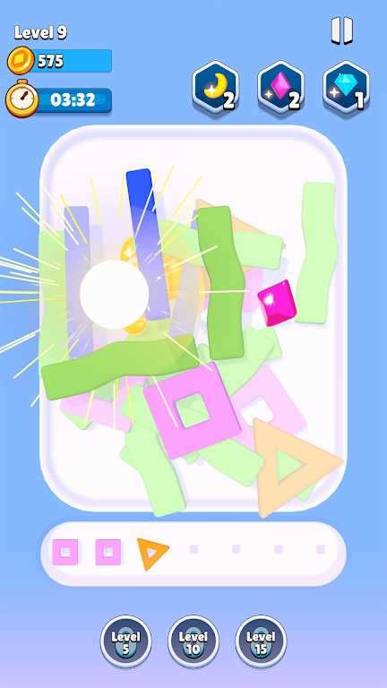 4、资源系统:通关获取星星与金币,星星用于解锁新关卡,金币可购买提示道具或外观皮肤,特殊关卡掉落稀有组件用于自定义创作。