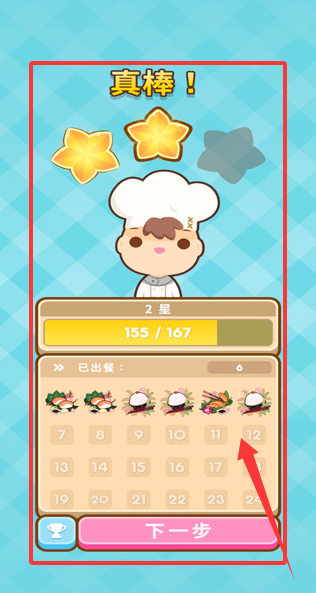 3、在关卡时间结束前制作的食物越多,得分也就越高,获得经验也就越多,经验可用来提示厨师等级,并解锁更多的食谱。