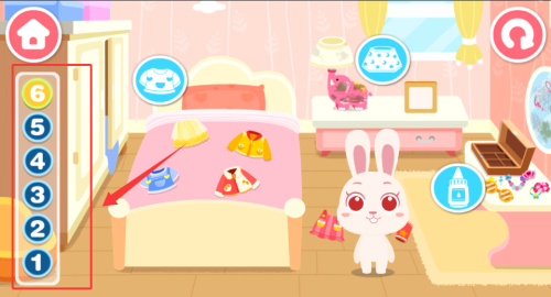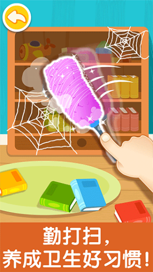 2、场景真实还原,精心设计卧室,客厅等生活场景,包含床铺整理,玩具分类,地板清洁等日常家务内容,让孩子在游戏中体验真实生活情境。