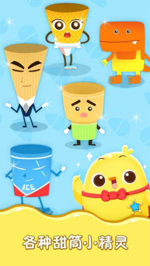 1、采用明亮活泼的卡通画风,塑造可爱甜筒精灵形象。色彩搭配鲜艳明快,视觉效果充满童趣。