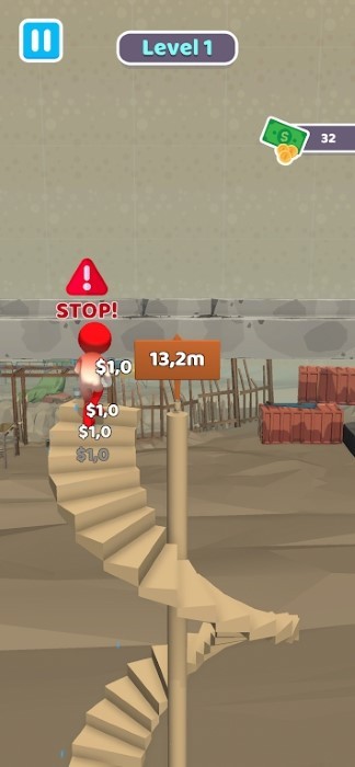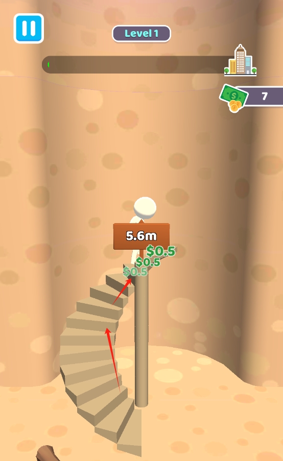 1、进入游戏后,角色自动站在楼梯起点,点击屏幕控制人物迈出第一步,开始向上攀登之旅。