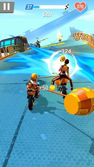 3、独特战斗元素:突破传统赛车规则,允许玩家在比赛中使用武器攻击对手,电击枪等多种武器供你选择,通过击倒对手为自己争取领先优势。