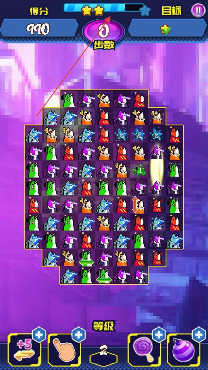 1、进入关卡,界面上方【得分】实时呈现消除所得分数,玩家需全力提升分数以达到【目标】数值,这是游戏核心目标之一。