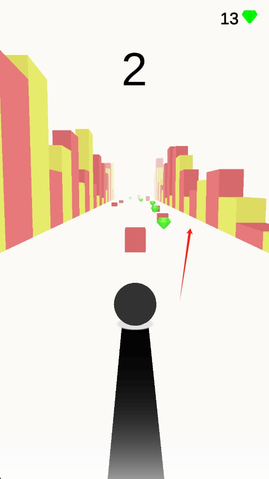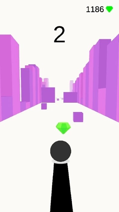 2、在赛道行进过程中,密切关注前方障碍物动态,通过快速滑动调整小球轨迹,同时尽可能收集沿途钻石提升分数。
