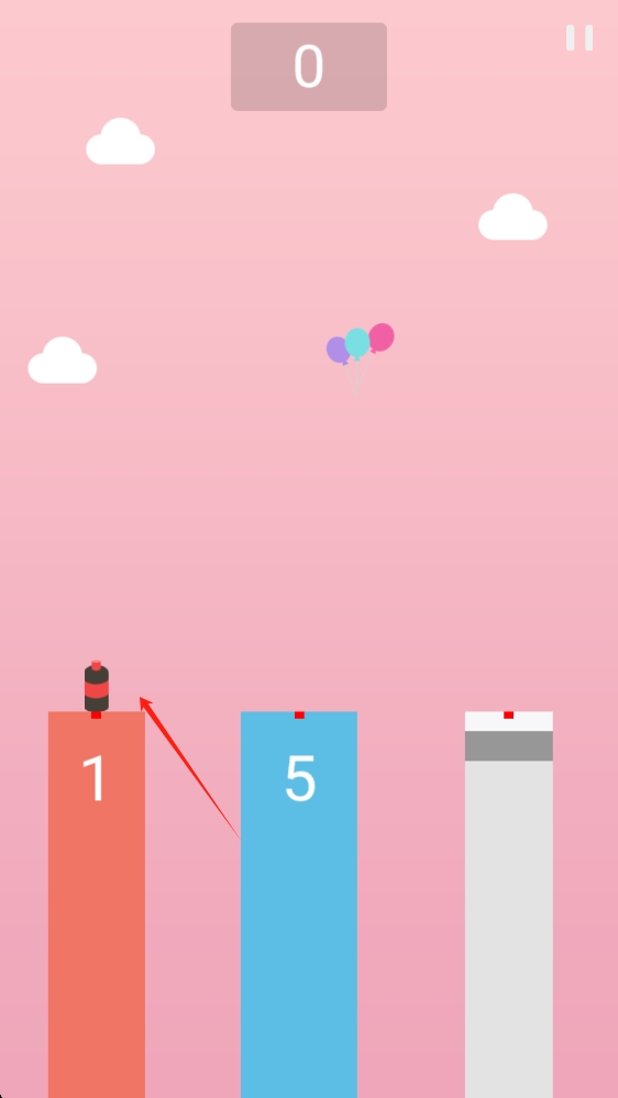3、在游戏过程中,控制按压屏幕时间,让瓶子从一个盒子跳到另一个盒子,获取相应分数。