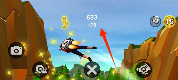 3、运气好的朋友们还可能获得火箭,火箭能够帮助你在落地前在收获一些金币,提高你的得分。