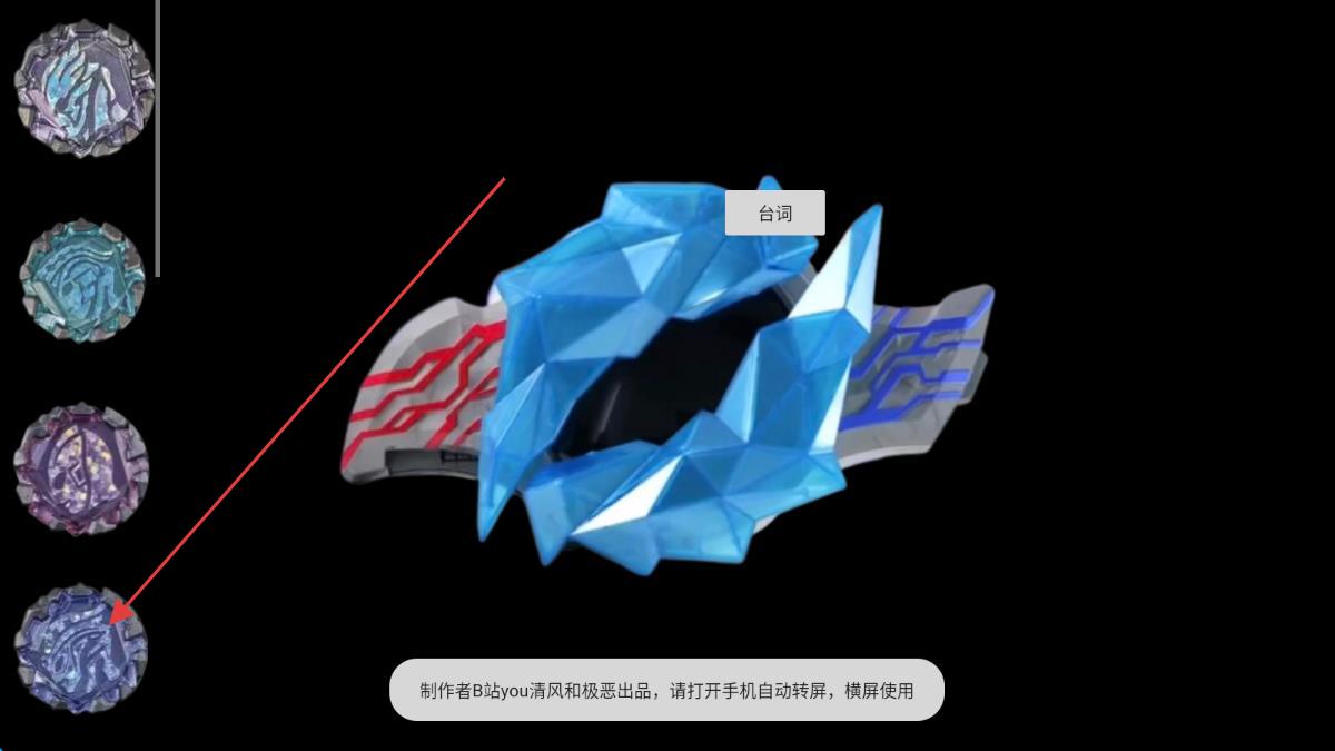 1、打开游戏,映入眼帘的是高度还原的布莱泽手镯界面,左侧罗列十一枚梅晶石,中间为核心变身手镯,右侧设有台词按钮。