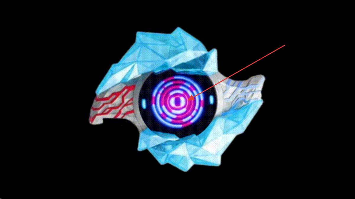 3、将选中的梅晶石拖拽插入手镯中央,瞬间触发变身特效:水晶展开露出显示屏,红蓝圆圈旋转交织,伴随专属音效完成变身模拟。