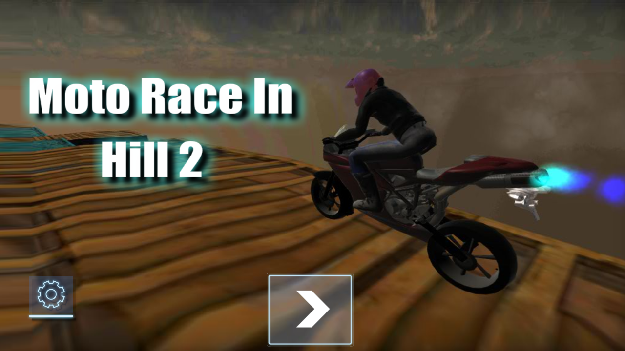 1、点击【Moto-Race-In】界面中的箭头按钮开始游戏,并可通过齿轮图标进行设置调整。