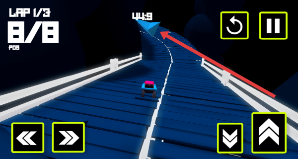 3、游戏过程中,在驾驶过程留意前方蓝色三角指引,按箭头方向操控车辆,确保行驶方向正确。