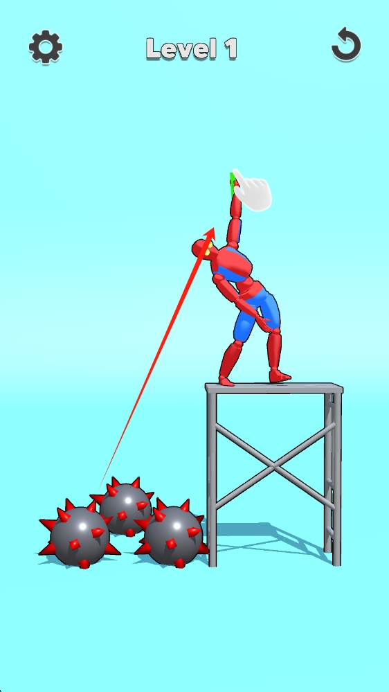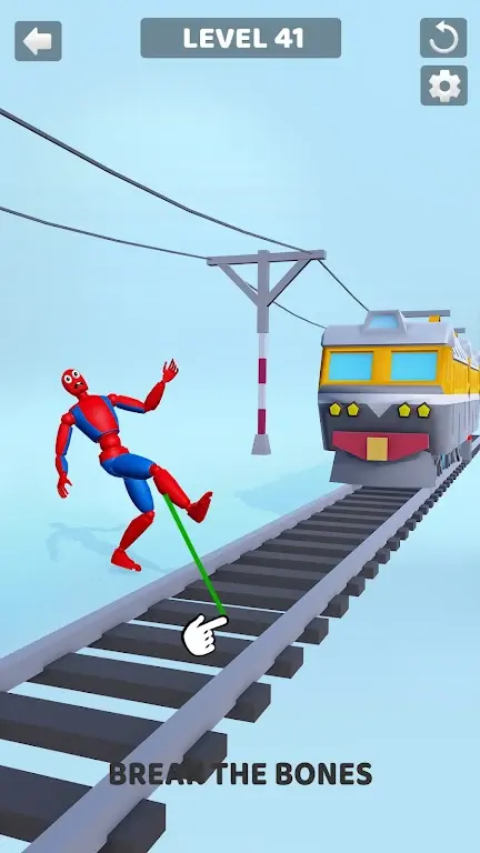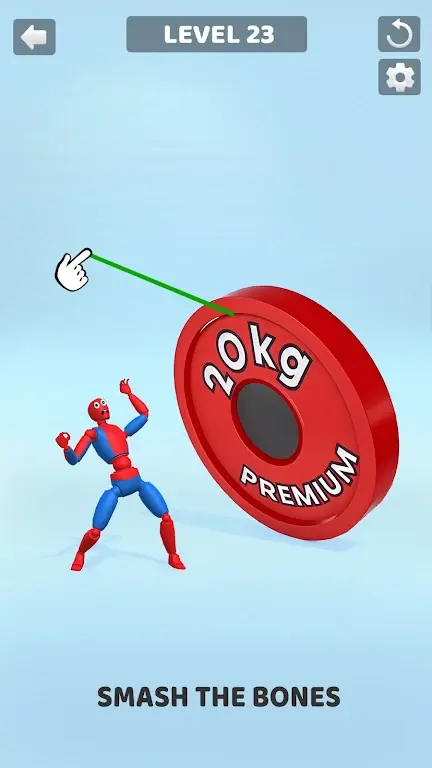 1、真实物理模拟:采用高精度物理引擎,布娃娃坠落姿态与碰撞效果完全随机,每次挑战都有全新的视觉体验。