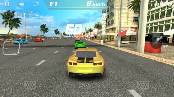 2、驰骋多样赛道:在不同场景赛道上,通过虚拟按键或重力感应控制赛车方向、加速与刹车,在弯道处利用漂移技巧降低速度损失,收集赛道上的道具提升优势。