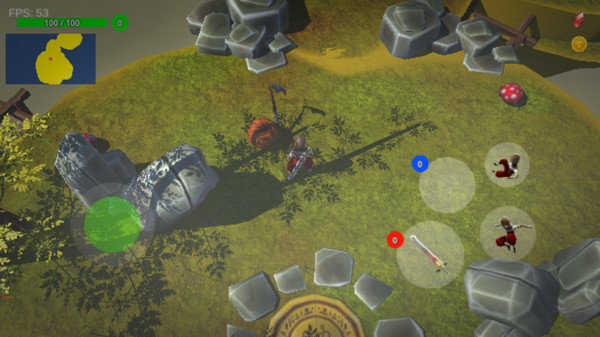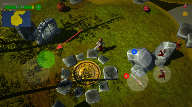 2、在游戏场景中,点击箭头所指的绿色区域(虚拟摇杆),灵活操控角色移动,探索周围环境。