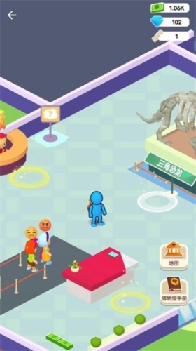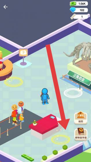 3、在博物馆区域,角色(蓝色小人)可前往箭头指向的功能区(如地图、博物馆手册),点击【博物馆手册】查看游戏指南。
