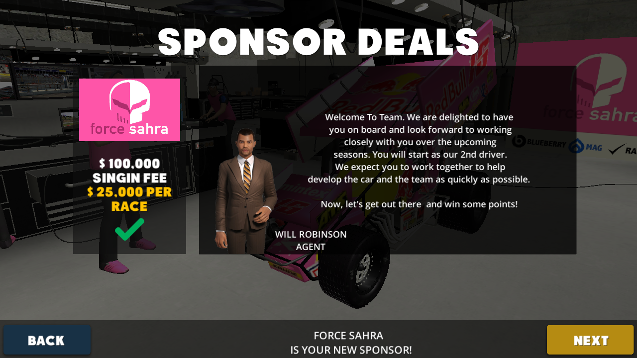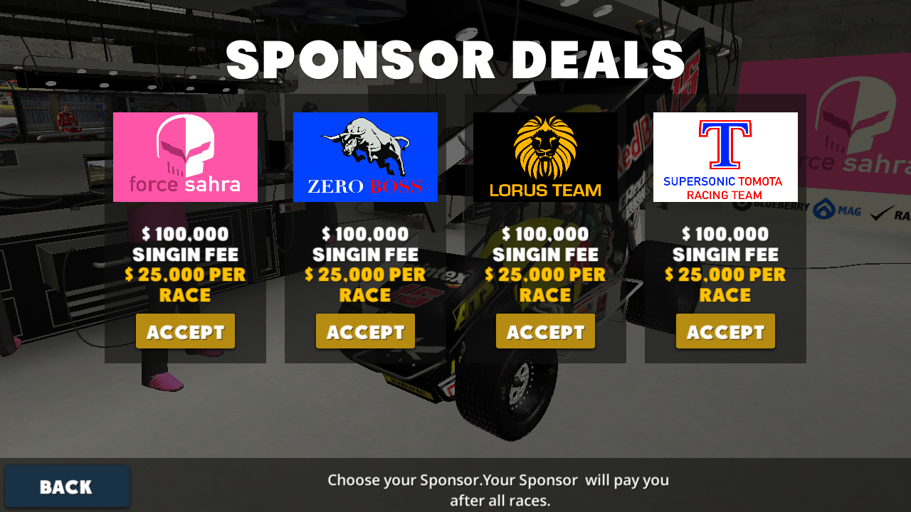 2、在【SPONSOR】界面选择赞助商【ZERO】等并点击【ACCEPT】接受赞助获取资金支持。