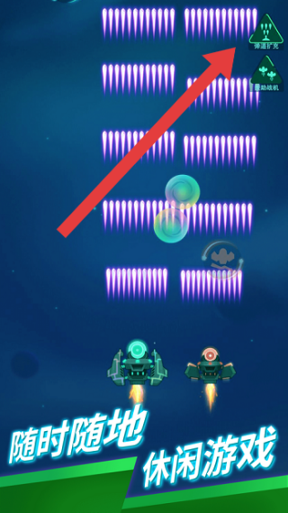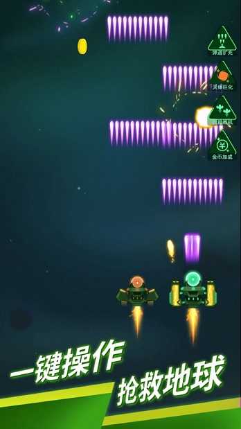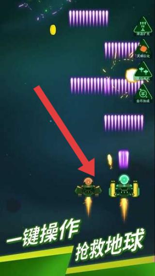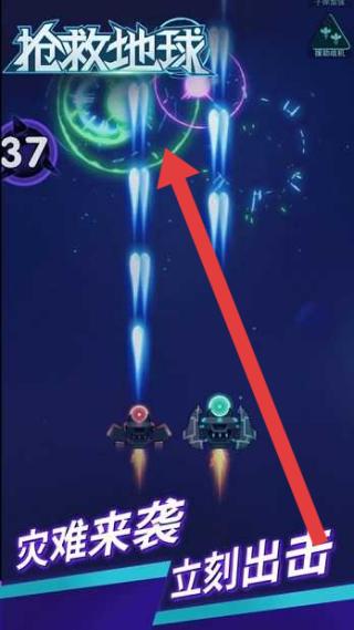 2、点击攻击按键瞬间增加战舰的攻击弹幕数量,以密集火力网压制迎面而来的敌群。