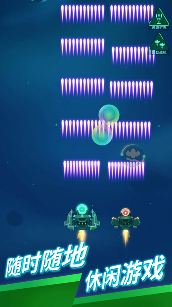 1、滑动屏幕精准控制战舰在星际战场中移动,巧妙闪避敌方弹幕的同时寻找有利作战位置。
