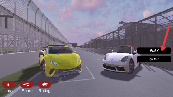 1、在地平线竞赛模拟器的选车界面确认后,需要点击【PLAY】按钮进入赛道,开启比赛。
