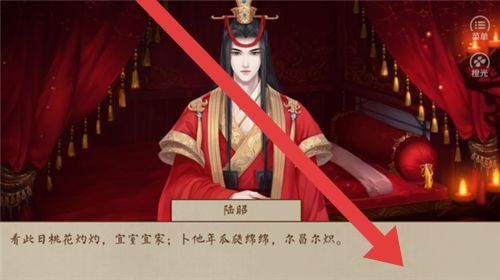 3、面对古风仪式场景(如婚嫁相关),阅读陆韶的诗句对话(如桃花姻缘描述),按箭头推进,沉浸古风剧情与情感脉络。