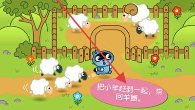 2、游戏过程中,依据【把小羊赶到一起,带回羊圈】的指引,引导Pango将分散的小羊聚集并赶回羊圈,锻炼操作能力。