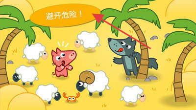 3、当出现【避开危险!】提示时,操控Pango和小羊躲开狼等危险,培养儿童应对危机的意识和反应能力。
