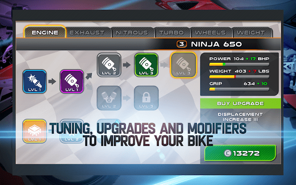 2、改装界面可对每个部件进行改装和升级,升级需要消耗货币,每场比赛都可获取货币。