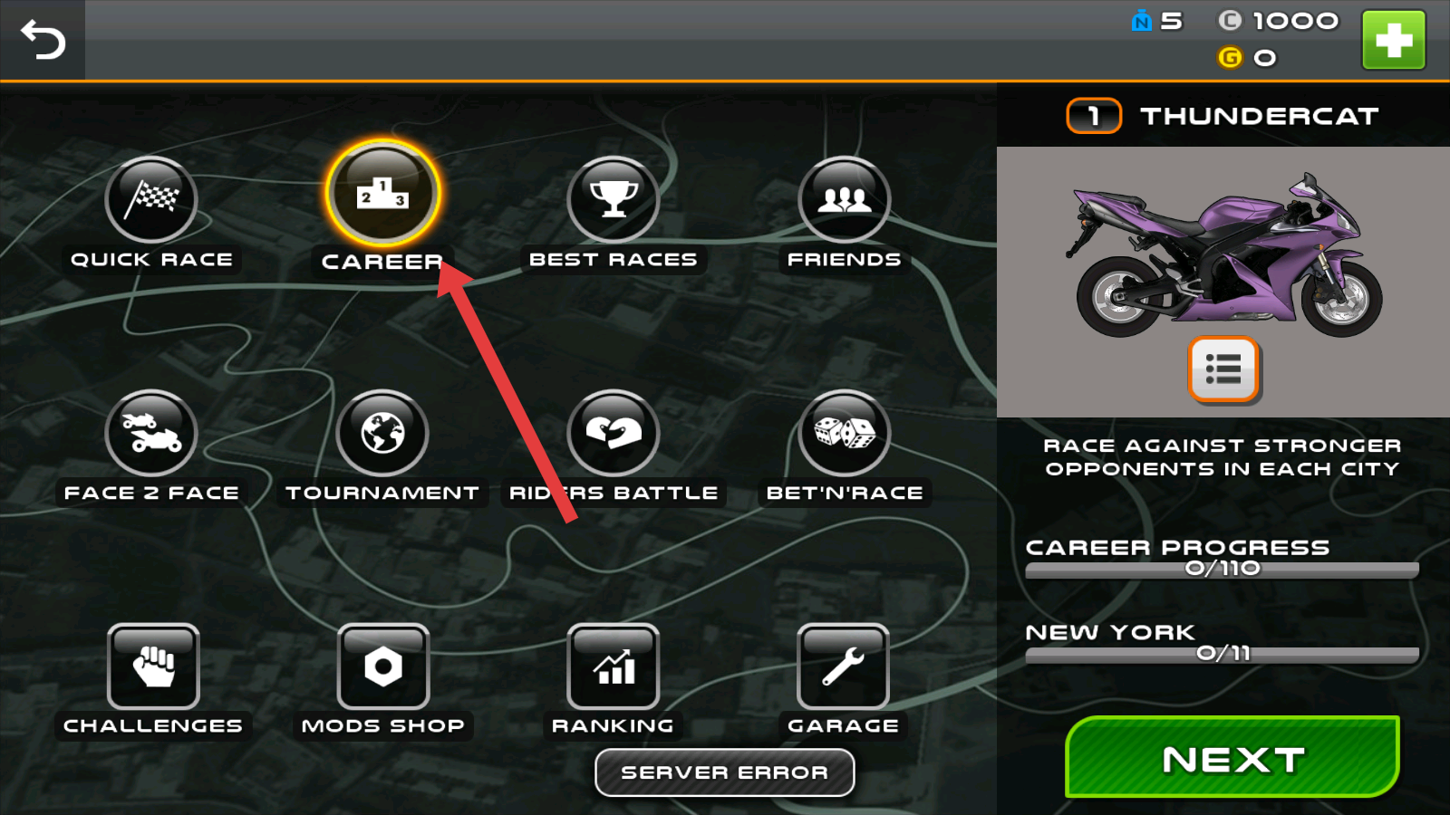 3、点RACE后可选多种比赛模式,支持FACE 2 FACE联机模式,点NEXT下一步进入比赛。