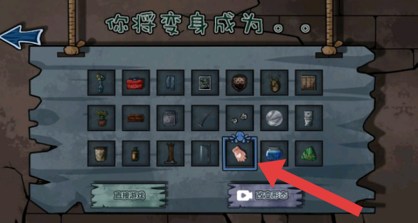 1、玩家可在此选择变身形象来进行,图中展示了多种可选择的物品或形象图标,还有【直接游戏】与【改变形象】按钮。