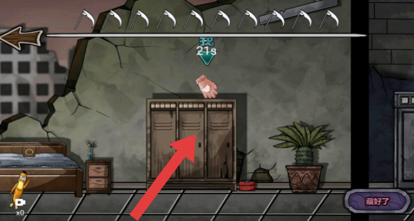 2、图中展示了一个室内场景,有衣柜、床、植物等元素,玩家化身一个布娃娃在衣柜上方,在游戏中的隐藏或互动环节。
