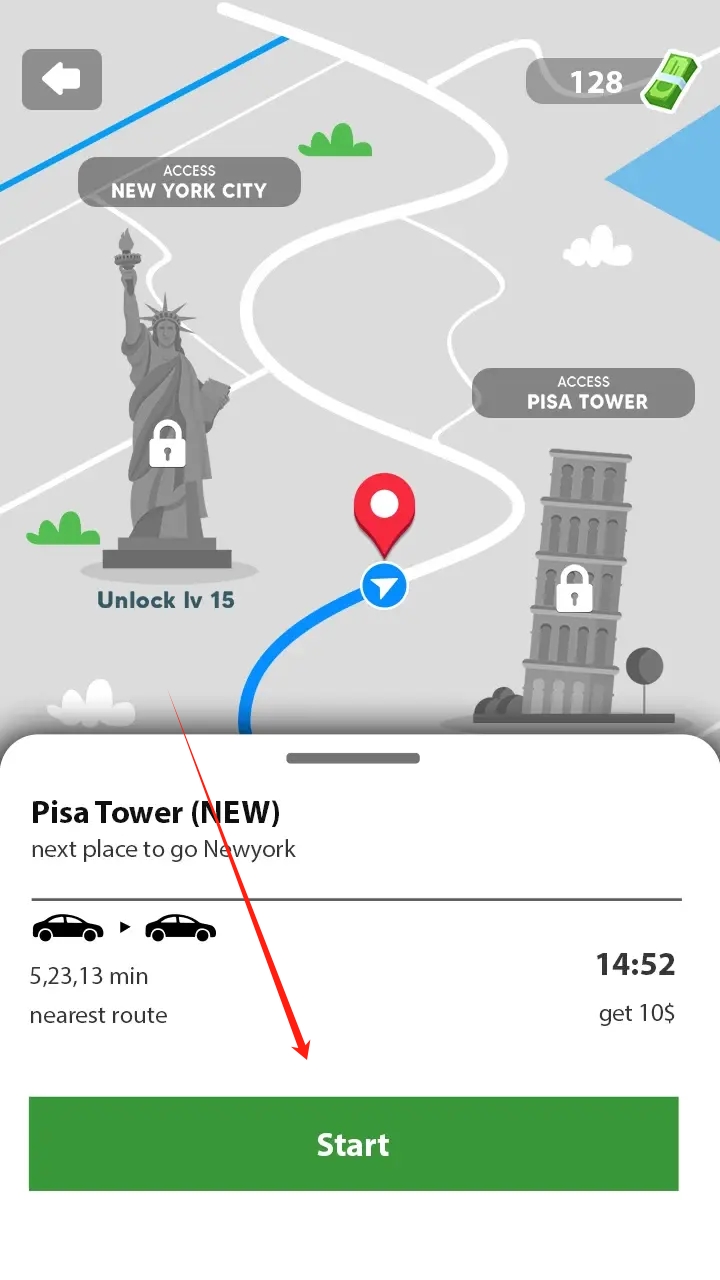 3、点击按钮开始接单,优先升级车辆引擎与悬挂系统提升驾驶性能,解锁高级计价器增加小费收入,后期投资广告拓展客源。