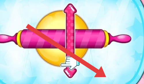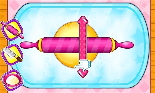 2、制作面食环节,跟随箭头指示,上下滑动粉色擀面杖(带箭头标识),擀制面团,掌握操作节奏以完成面食制作。