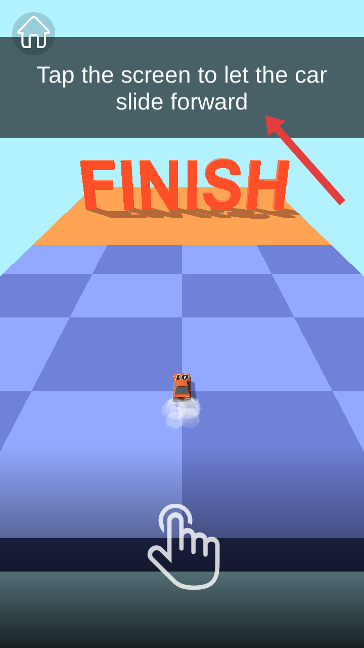 2、依据提示【Tapthescreentolethecarslideforward】,点击屏幕让车辆向前滑动,朝着终点行进。