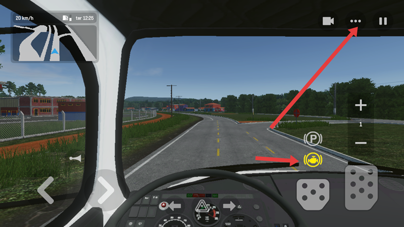 3、点击发动机图标,档位切换到1档,长按长踏板加油启动,右上角有更多功能。