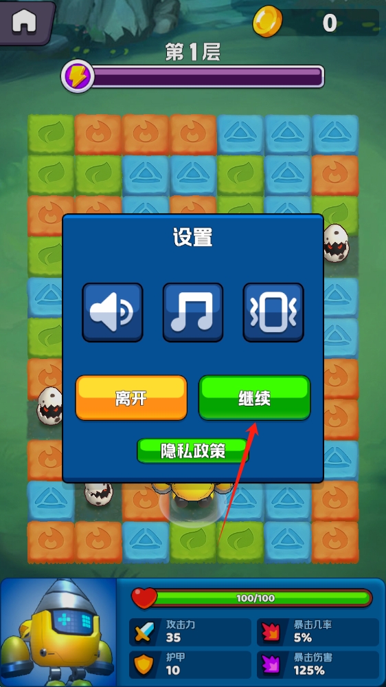 3、点击按钮继续,优先升级范围消除与多段伤害技能,挑战高难度关卡前调整技能搭配以应对不同敌人类型。