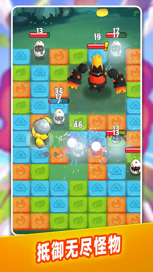 1、动态战斗消除:消除方块触发即时战斗效果,连续消除同色方块增加连击倍率,特殊方块组合释放大范围清场技能。