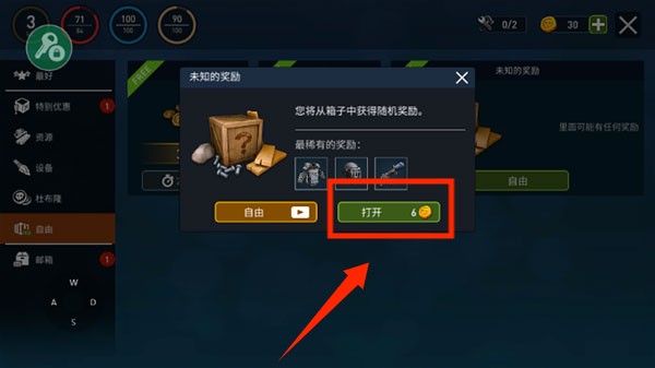 3、开启宝箱前可以看到宝箱里可能会有什么物资。