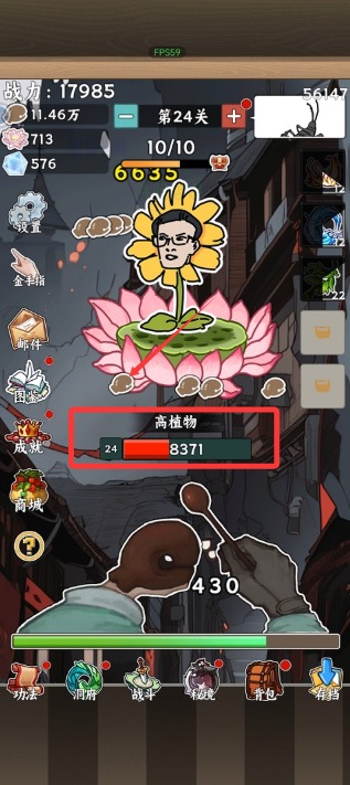 2、小怪下方显示的是各类数值、图鉴和成就等功能按钮,帮助你了解当前进度。