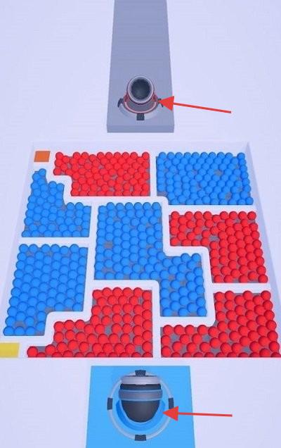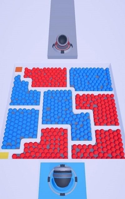 1、玩家需观察红蓝小球的分布格局,规划消除路径,通过合理操作使小球汇聚。