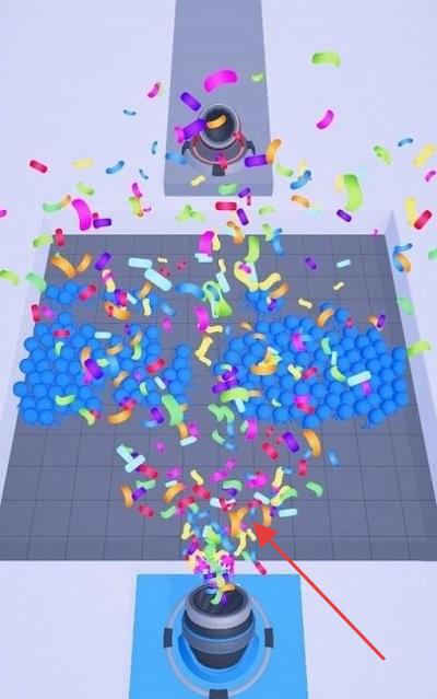2、玩家操控装置发射或移动,使同色小球聚集并消除,如将红色和蓝色小球分别集中处理。