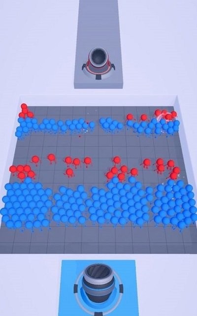 2、闯关区域选择:在不断闯关的精彩挑战中,玩家需明智选择面积最大的区域,积累更多的小球士兵,为战斗胜利奠定基础。