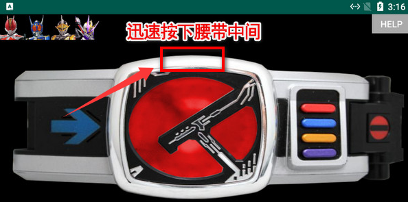 2、此时的步骤一定要连续操作,迅速按下腰带中间,对应电王形态的特效音效就会出来。