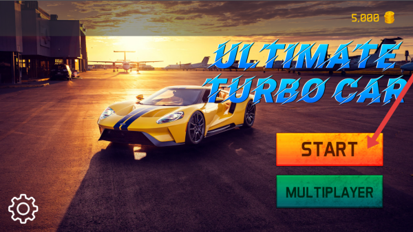1、进入终极涡轮增压车的主界面,然后你需要点击橙色的【START】按钮,开启游戏。