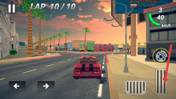3、在游戏过程中,需要点击右下角类似油门的按钮,控制车辆加速行驶,顺利完成比赛。