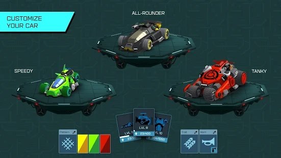 1、组装未来赛车:从科技树中选择底盘与引擎,搭配主被动技能模块,如为高速型赛车加装涡轮延迟爆炸技能,在被追击时触发范围伤害反制。