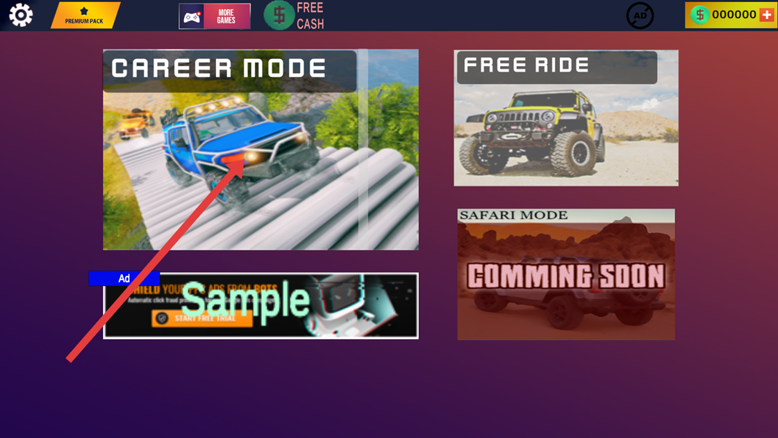 1、打开游戏,在游戏主界面选择CAREER MODE生涯模式,自由模式需要解锁。