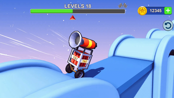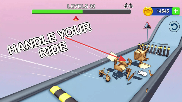 3、驾驶闯关挑战:组装完成后,点击屏幕即可控制车辆前进,玩家需要驾驶车辆在赛道上行驶,成功避开或通过各种障碍物。