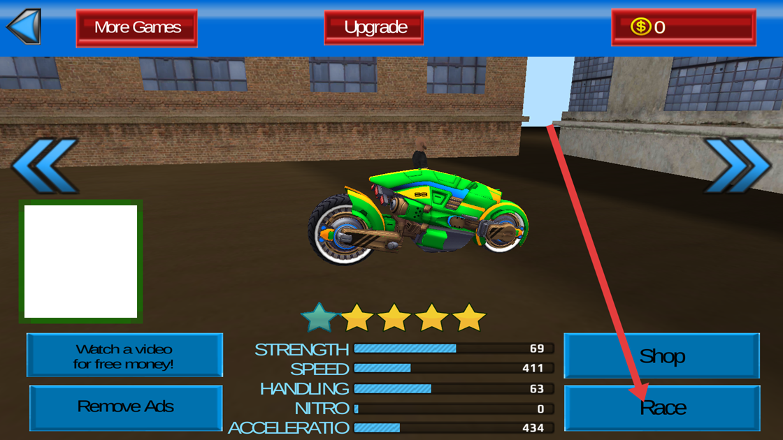 2、你可以点击上方的Upgrade对车辆进行升级改造,然后点击下方的Race回到纽约街道。