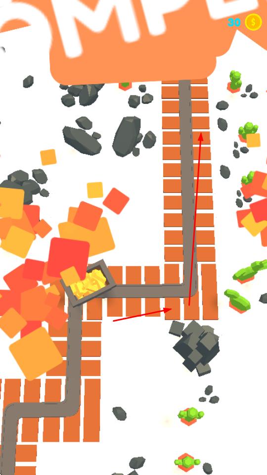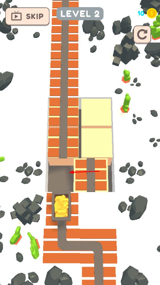 1、玩家在游戏中通过操作规划轨道走向,引导载有黄金的车厢在轨道上移动。