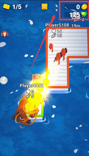 2、还有精彩的路上滑动的时候,记得拾取礼包跟落水人员,还有多余的浮块。