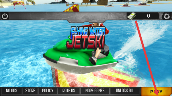 1、在游戏主界面,你需要点击底部的【PLAY】按钮,正式开启水上摩托快艇的游戏体验。